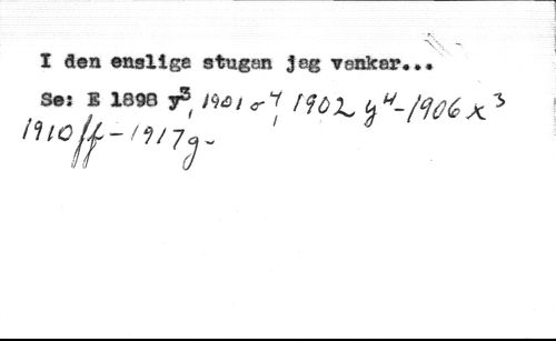 I den enslige stugan jeg vankar«.. //// S.! E 1896 jS( m/, 7 [¡¡(¡X, u ''-Moi A 3 //// h'if-',7r