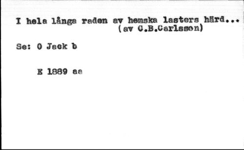 I hela långa radan ar hemsks lasters hård. //// (ar G. B. O arlasen) //// Se: 0 Jack b //// E 1889 ea