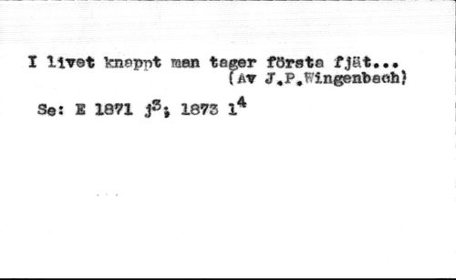 I livet knepnt man teger förste fjät.*# //// Tät J^P.Wingenbeoh? //// Se: E 1871 js* 1873 i4