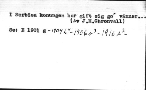 I Serbien konungen har gift sig go' ränner«.« //// (Ar J.H.ChronvaLl) //// s«! k 1901 s