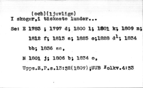 ( och){ljuvlige) //// I skogerti täoksat© lunder«,* //// Se: E 1783 J 1797 di 1800 1* 1801 k; 1809 n; //// 1812 t\ 1813 e; 1825 o;1828 d1*, 1834 //// bb; 1836 BB, //// N 1801 j; 1306 b*, 1834 o, //// TTpps.Z.P.3,13:32(1807) ;UUB *olkV.4ï33
