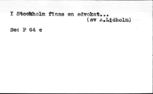 X Stockholm finna on advokat... //// (av ü.Lidholm} //// So: P 64 c