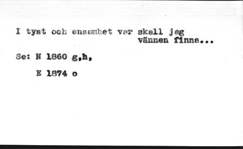I tyst och ©nsutnhet var akall jeg //// vännen finna. //// Set N 1860 g,!i, //// E 1874 o