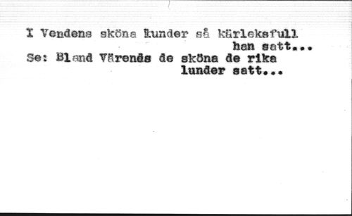 I Yendens sköne kunder s& kärleksfull //// han satt.. //// Se: Bland Varenda de sköna de rika //// lunder satt...