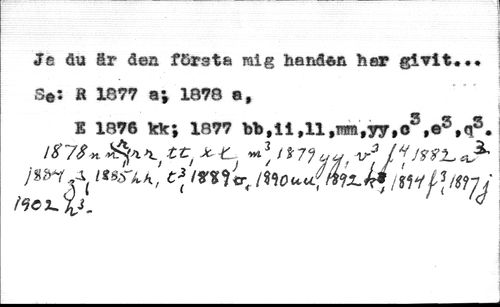 Je du är- den första mig handan har givit,.• S#s B 1877 a; 1878 ef //// E 1876 kk; 1877 bb.iiill,inmfyy,o3le3,q3. //// 187$* tr Jr. ^ «t ' /17? ir-1 /^<&- //// JWA. HiTkk, //// inciJu, '« //// é