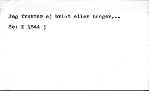 Jag frukter ej brist eller hunger. Se; E 1844 J