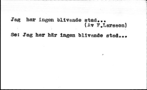 Jag bar ingen blivande stad... //// (Av ?.Larsson) //// Se: Jag har här Ingen blivande stad.«.