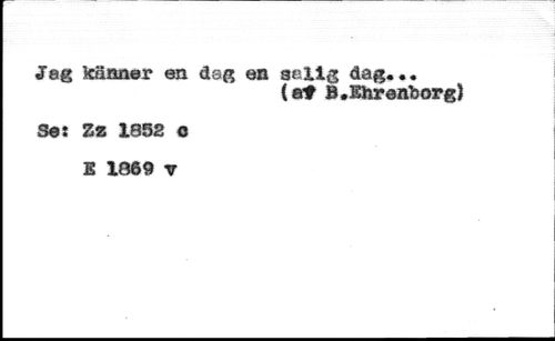 J8g känner en daß en gnllg dag... //// (a-f B.Ehr enborg) //// Set Zz 1852 o E 1069 v