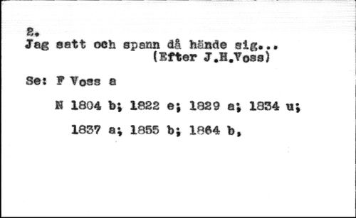 s. //// Jag satt och spann d& hënde sig. //// (Efter J.H.Yoss) //// Seî F Voss a //// K 1804 b*, 1822 e; 1829 a; 1834 n //// 1837 a; 1855 b; 1864 b, //// m*