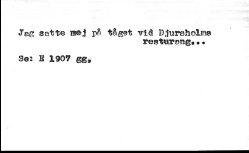 Jag aette ras J på tåget viå Djurcholrw //// resturong*•• //// Se: E 1907 gg,