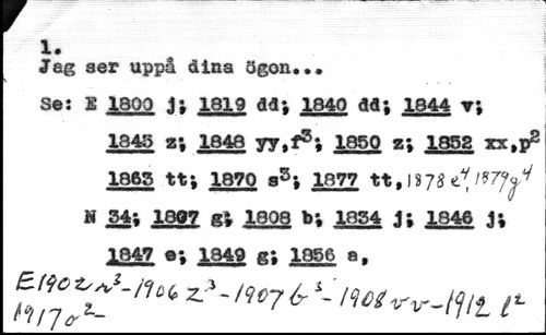 4.« //// Jag ser uppå dina ügon... //// Se: 2 1800 U 1819 di*, 1840 dd; 1844 y; //// 1345 2; 1848 yy.f3; 1850 2; 1852 xx.p2 1865 tt; 1870 a5; 1877 tt, \ÎJ8 » 34** 1007 g; 1808 b; 1854 J; 1846 J; 1847 ©; 1849 g; 1856 a,