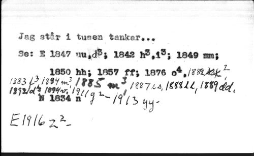 Jag 3t*r 1 tusen tankar,.. //// Se: B 1847 nu,dsi 1842 h3,Is*, 1849 ran; 1850 hh; 1857 ffj 1076 //// tfíUt{/mS!'/¿f£ >aiU, /rtW, //// ElIlLxK //// If