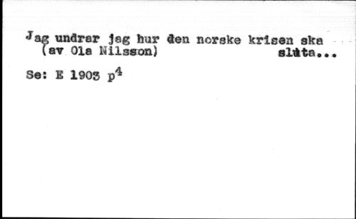 Jag undrar Jag hur den norske (av Ola Nilsson) //// Se: E 19055 p4 //// krisen ska sidta...