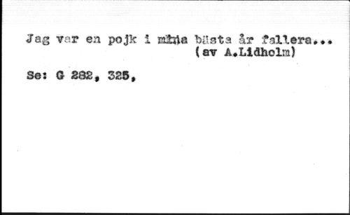 Jag var en pojk 1 vü&a bilata år fallera,** //// (av A.Lldholrn) //// Se: 0 282, 328,