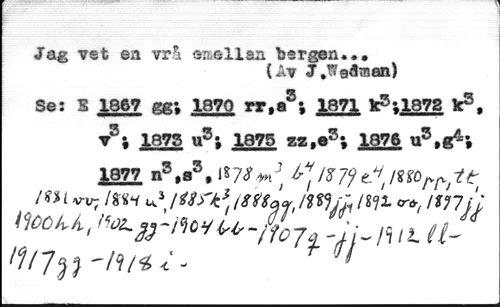 Jag vet en vrå siwsllan bergen* //// (Av J»We<3raan) //// Se: S 1867 gg; 1870 rr,a3; 1871 k?0978 k3, ?3; 1875 u3; 1875 zz,e3; 1876 u3,g^; ¿877 n3,a3,ls7J*nJ; //// / w i v-u; /rw w\/wre tsnL wyz im <r&( un u //// -Jj~nil u~