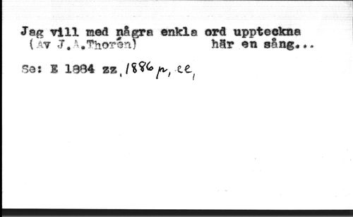 Jag rill med några enkla ord uppteckna //// (at «7»A*Thorén]f hdr en aong.. //// Se: E 1884