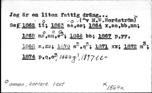 Jeg ër en liten fettig dräng... //// o *o M.^.Nordatrí //// SeF1862 il; 186? ee,ee; 1864 x,eafbb,nn; //// Iffg-g mf,uute^; lüS6 bb; 1867 p,yy, //// 186G n,zzi lú7Q n?tq3; 1871 xx; 1872 mS //// 182i P*Q»°® //// i //// cutmut, Æae/are /ext //// '/£¿>9k //// •»