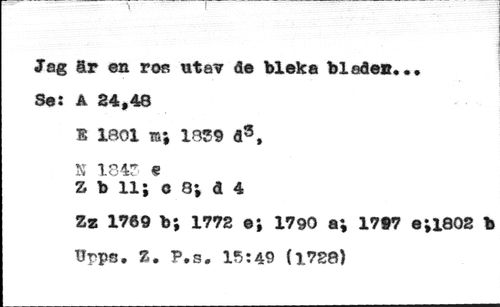 Jag är en ros utav de bleka bl öden.,. Se: A 24,48 //// B 1801 isj 18Z9 d3, //// S 184? e //// Z b ll; c 8; d 4 //// Zz 1769 b; 1772 e; 1790 a; 1797 e //// TJrps. Z. P,s. 15:49 (1728) //// #*