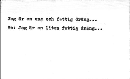 Jag Sr en ung och fettig dräng... Se: Jag är en liten fattig dräng«.«