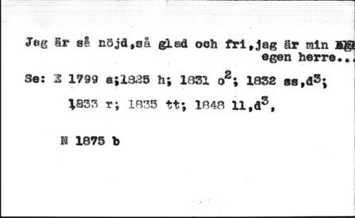 Jbß gr aè nSjd.så gled och fri,Jag är rain Vß //// egen herre,., //// Se: 2 1799 a;lA35 h; 1831 o2; 1832 as.d^j //// *833 r; 1835 tt*, 1848 11,d3, //// M 1875 b
