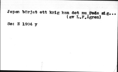 Jspar bfirjat ett krig kan det nu reda alg« //// (er L.F.Ågren) //// Se: E 1904 y