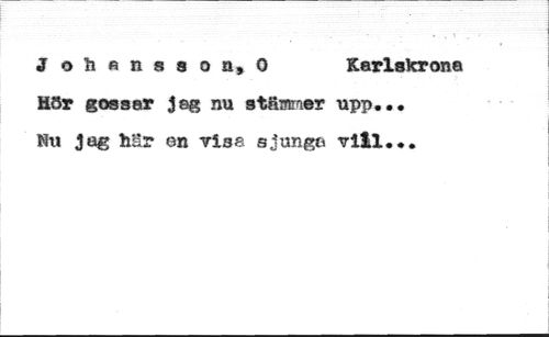 3 ofc«nsson,Q Karlskrona //// Hör gossar jag nu stämmer upp... //// Nu jag här en visa sjunga vill,..