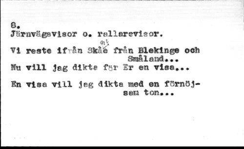 8. //// Jörnvägsvisor o* rallarevisor. //// <hl» //// Vi reste if Än Skåé från Blekinge ooh //// Småland... //// !?u vill Jag dikta f«r 2r en visa... //// En visa vill jeg dikta med en förnöjsam ton...