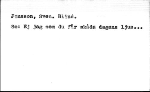 Jönsson, Sven, Blind, //// Sei Ej åag eon du fhr skåda dagens ljus
