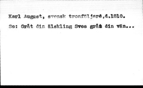 Karl August, s'^nsk tronf^l5ard,d.l810. Se: GrAt <3in älskling Svea gråt din Tän.