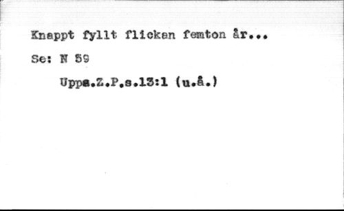 Knappt fyllt flickan femton år, Se: N 59 //// Uppa.Z.P,s.l3:l (u*å.)