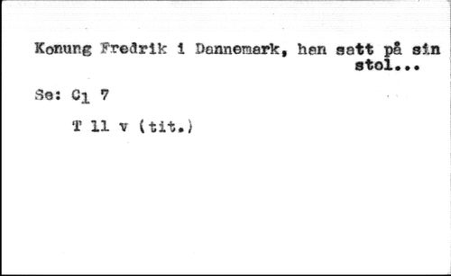 Konung Fredrik i Danneraark, han satt på sin //// stol... //// Se: Gi 7 //// T 11 v (tit.)