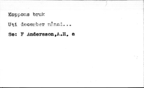 Koppoms bruk //// Uti decffir.be» manad... //// Se: F Andersson ,å.H. e