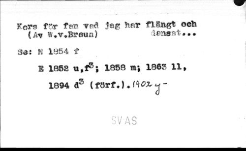 Y ors tuY tm vaå jag hnr flängt och //// (Av «.v.Braun) iensat.** //// 3^: N 1954 f //// E 1852 u,#; 1858 m; 186? 11, 1894 åS (förf.) •