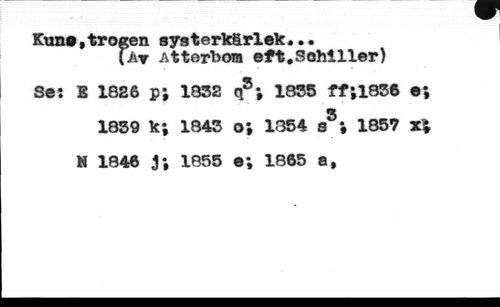 Kuno,trogen systerkärlek... //// (Ar Atterbo® eft.Sohiller) //// Se: E 1826 p* 1852 q5; 1835 ff;l836 e; //// 1839 k; 1843 o* 1354 s®*, 1857 %% //// N 1846 J; 1855 e; 1865 a,