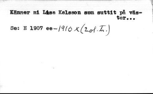 Känner ni Ltse Kelsson som suttit på väster. • • //// se: B 1907