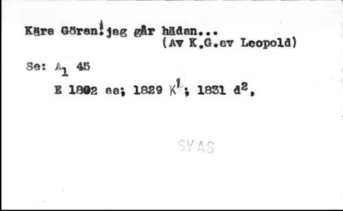 Käre GSraníjag går hädan... //// (av K.G.nv Leopold) //// S©: A^ 45 //// E 1802 ©a| 1829 K*i 1851 d2, //// '5/ A
