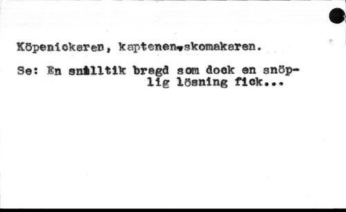Köpeniekaren, kaptenen«tskomakaren. //// Se: In snilltlk bragd ao® doek en snöplig lösning fick..»