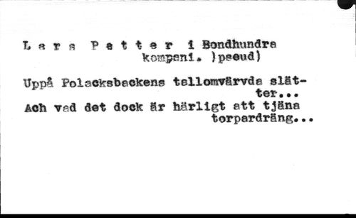 T, * r a Petter 1 Bondhundra //// kompani# )peeud) //// \Jppå Polscksbeckens tellomvfirvda slätter... //// Ach vad det dock Sr härligt att tjäna //// torpsrdräng..
