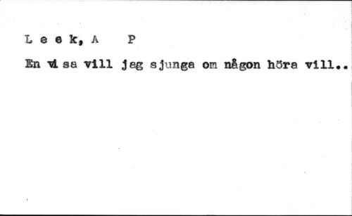 L e e k, a P //// Bn si sa vill 3eg sjunga ora någon höra vill..