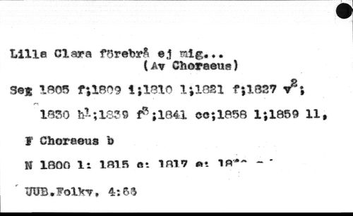 Lilla Clara fOrebrA ej mlg,,. //// {Av Choraeus) //// Se* 1305 f*,lB09 i *,1810 1*1881 f*,1827 //// 1350 h?-;13?9 i 1841 ce;1858 1*1859 11 //// I Choreen» b //// N 1S00 It 1815 e*. 1817 mt 1R*~ - ' //// UUB.FolV?, 4:01
