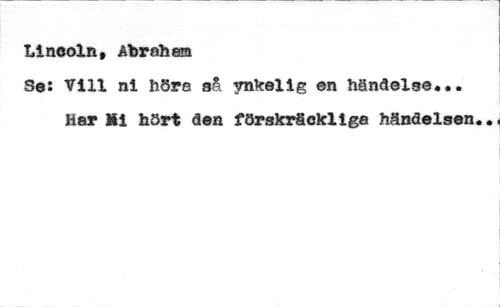 Lincoln, Abrakera //// Se: Vill nl liöre aå ynkelig en händelse.«. Har Mi hört den förskräckliga händelsen.*