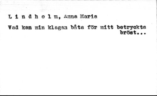 Lindholm, Anna Haria //// Vad kan min klagan båta för mitt betryckta //// bröst...