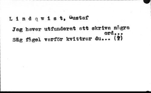Lindqvist, ^istef //// Jeg haver utfunderat att skriva n^gro //// ord•.• //// SSg f^gel verför kvittrar du.., (t)