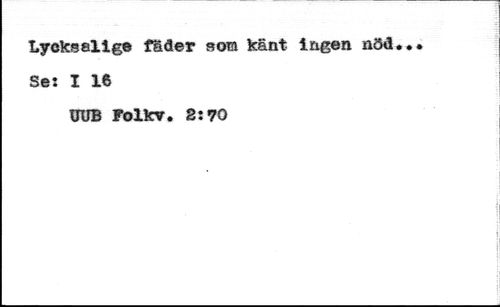 Lyoksalige fäder som känt Ingen nöd. Ses I 16 //// UUB Follnr. 2:70
