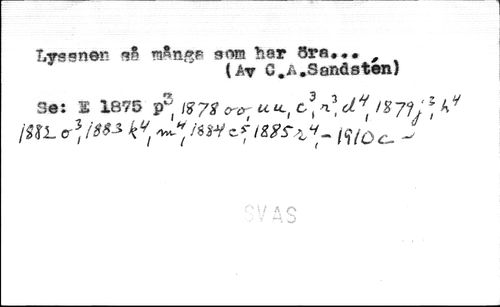Lys» «»nen aS m&n&a liar öra • • • , //// (Av C./*.Sandsten) //// Se: £ 1875 p^ l?7$ er#; un-'c] n?d* ¡ML cr*/t** kVt *S(iWe.r fi/ö //// '*71 c~ ^