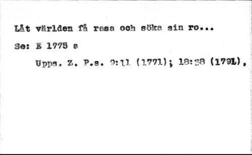 Låt världen få resa ooh söka sin ro**. //// Ses I 1775 s //// 0pps, 36. P.3. 9îU (1771) ; IB! SB (1791),