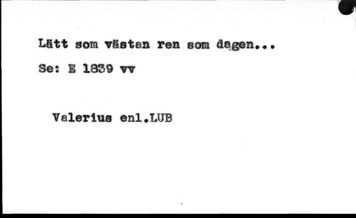 Lätt som västen ren som degen. Se: I 1839 w //// Valerius enl.LUB