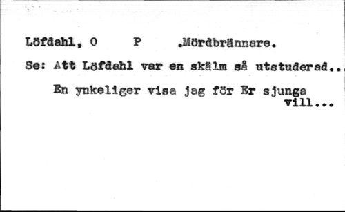 •Hördbrännare. //// Löfdahl, 0 P //// Se: Att Löfdahl var en skälm så utstuderad //// En ynkeliger visa jag för Er sjunga //// vill..