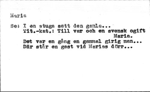Har i a //// Se: X en stuga sett dea ganle*.. //// Tit.-kat.: Till var och en svensk ogift //// Maria. //// Det var en gång en garamal girig man... D§r står en gast vlå Marias dörr...