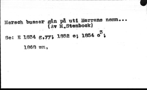 Mersoh hussar gån på uti Herrans //// fåT lå.Stenhock) //// g //// Se: 1 IBM g,TT, 1958 e; 1854 o 1868 »m,